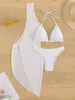 with Beach Cover Up Halter Ribbed Bikini Women Swimwear Female Swimsuit Three-pieces Bikini Set Bather Bathing Suit Swim