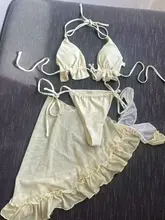 With Mesh Sarong Halter Ruffled Bikini Women Swimwear Female Swimsuit Three-pieces Bikini set Bather Bathing Suit Swim Beachwear