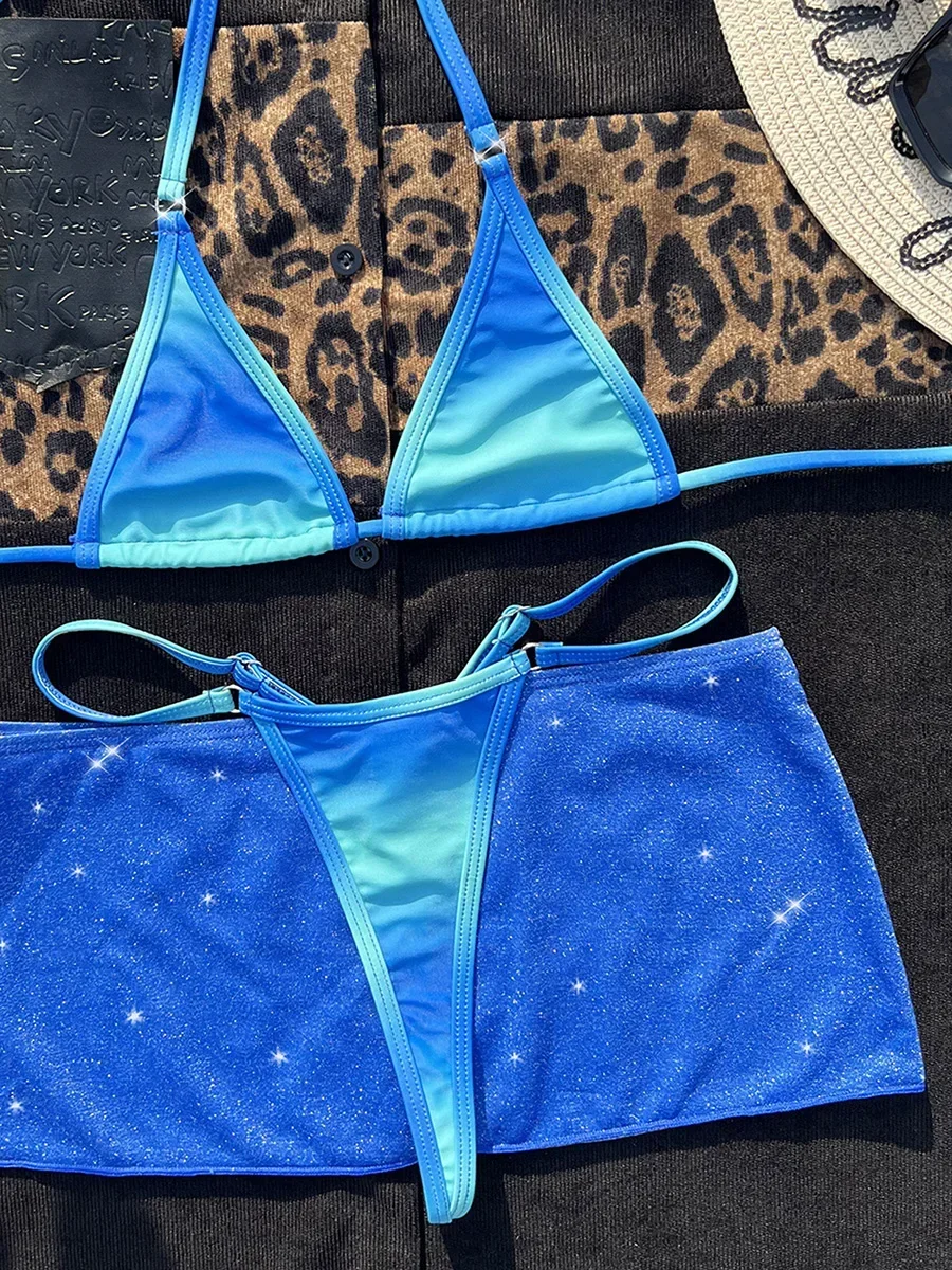 With Skirt Halter Mini Micro String Thong Bikini Female Swimsuit Women Swimwear Three-pieces Bikini Set Bather Bathing Suit Swim