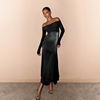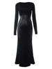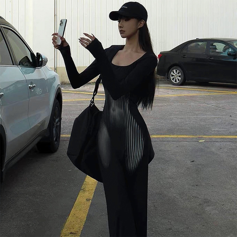 Women Square Collar Long Sleeve Dress High Waist Abstract Stripe Body Print Dress Casual Wrap Hipster Mermaid Dres