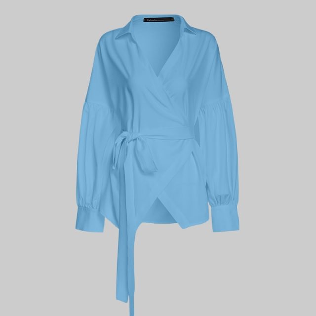 Women's Belted Loose V-Neck Blouse with Lantern SleevesWomen's Belted Loose V-Neck Blouse with Lantern SleevesWomen's Belted Loose V-Neck Blouse with Lantern SleevesWomen's Belted Loose V-Neck Blouse with Lantern Sleeves