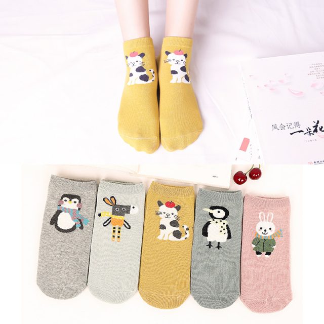 Women’s Cotton Cute Printed Socks 5 Pairs