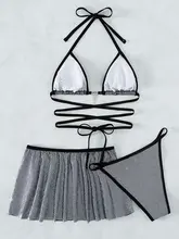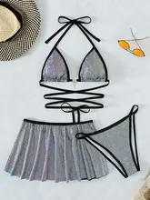 Wrap Around Halter with Skirt Bikini Women Swimwear Female Swimsuit Three-pieces Bikini Set Bather Bathing Suit Swim Beachwear