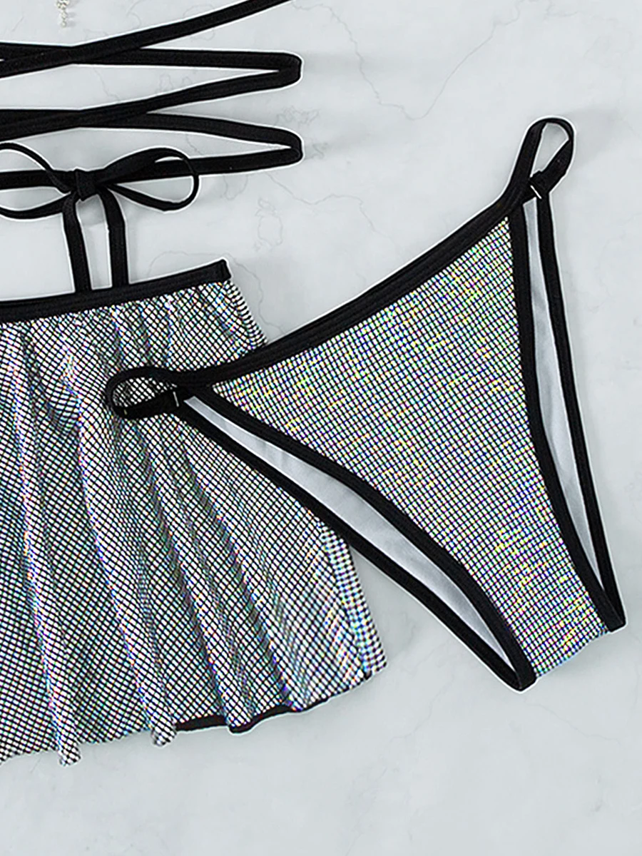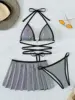 Wrap Around Halter with Skirt Bikini Women Swimwear Female Swimsuit Three-pieces Bikini Set Bather Bathing Suit Swim Beachwear