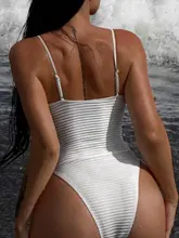 Wrinkled V Neck High Leg Cut One Piece Swimsuit Women Thong Swimwear Female Bather Monokini Bathing Suit Swim wear Beachwear