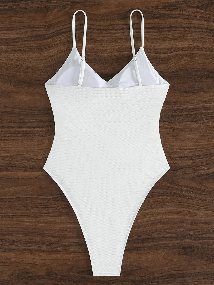 Wrinkled V Neck High Leg Cut One Piece Swimsuit Women Thong Swimwear Female Bather Monokini Bathing Suit Swim wear Beachwear