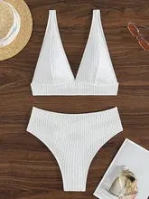 Wrinkled V Neck High Waist Bikini 2025 Female Swimsuit Women Swimwear Two-pieces Bikini Set Push Up Bathing Suit Swim Beach Wear