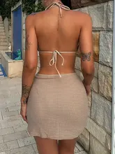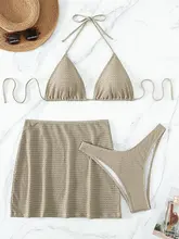 XS – L Halter With Skirt Wrinkled Bikini Women Swimwear Female Swimsuit Three-pieces Bikini Set Bathing Suit Swim Beachwear Lady