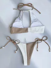 XS – L Splicing Halter Pearls Bikini Female Swimsuit Women Ribbed Swimwear Two-pieces Bikini Set Hollow Out Bathing Suit Swim