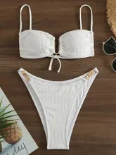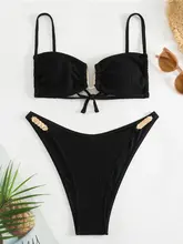 XS – L U Neck Wrinkled Ribbed Bikini Female Swimsuit Women Swimwear Two-pieces Bikini Set High Cut Bather Bathing Suit Swim Lady