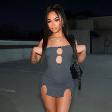 Y2K Mini Dress Women Summer Hottie Hollow Out Strapless Solid Color Pullover Dresses Streetwear 2025 Women Clothes