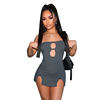 Y2K Mini Dress Women Summer Hottie Hollow Out Strapless Solid Color Pullover Dresses Streetwear 2025 Women Clothes